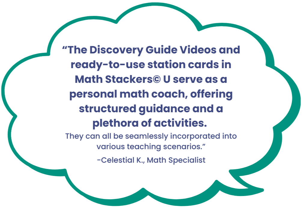 Access to Math Stackers® U: On-demand videos, extension activities, and station cards galore.