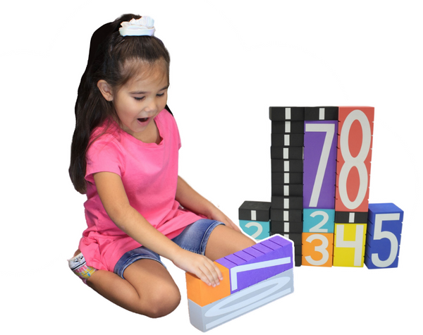 96 durable foam blocks: Height shows value, notched sides, logo on bottom.